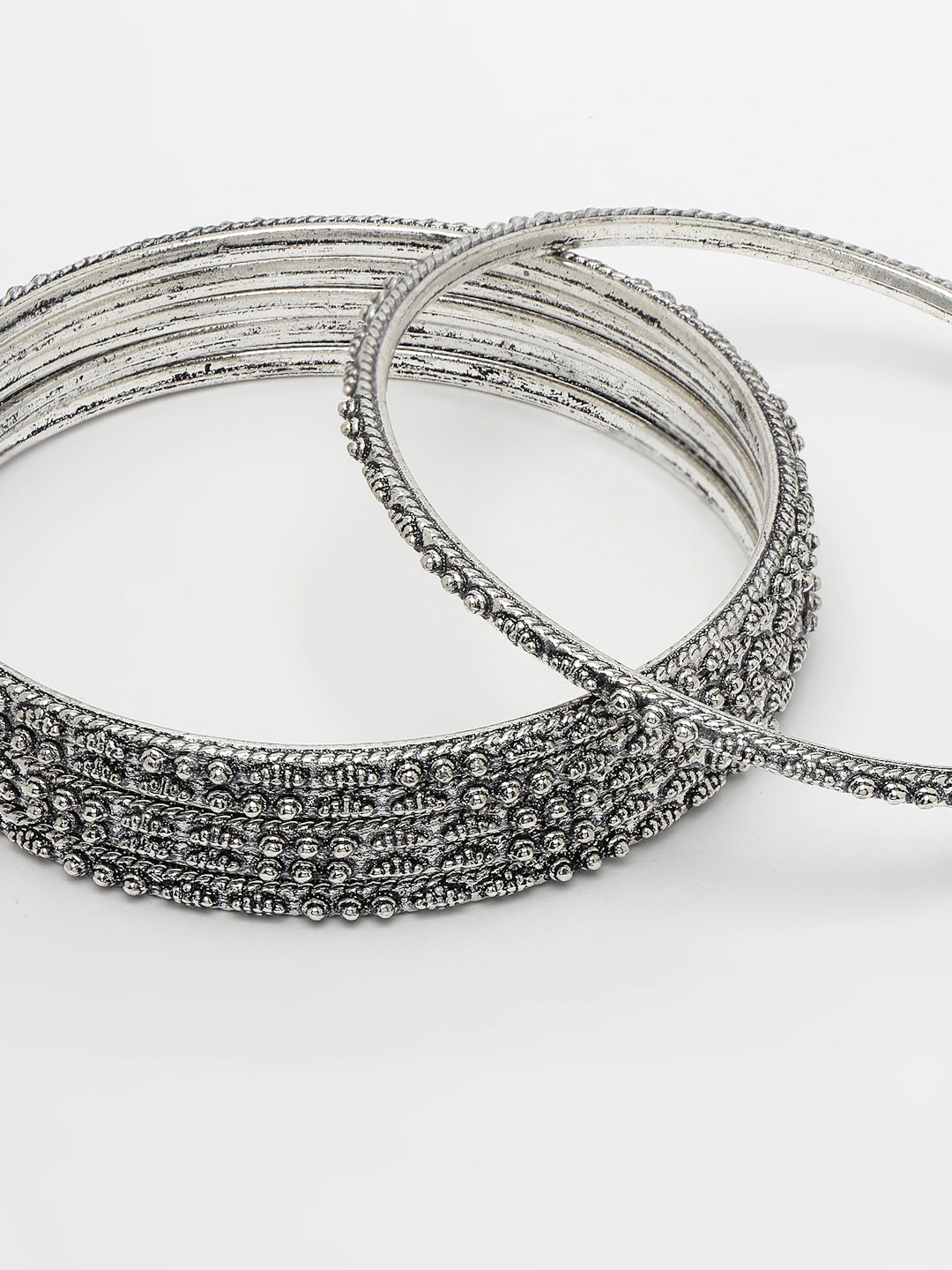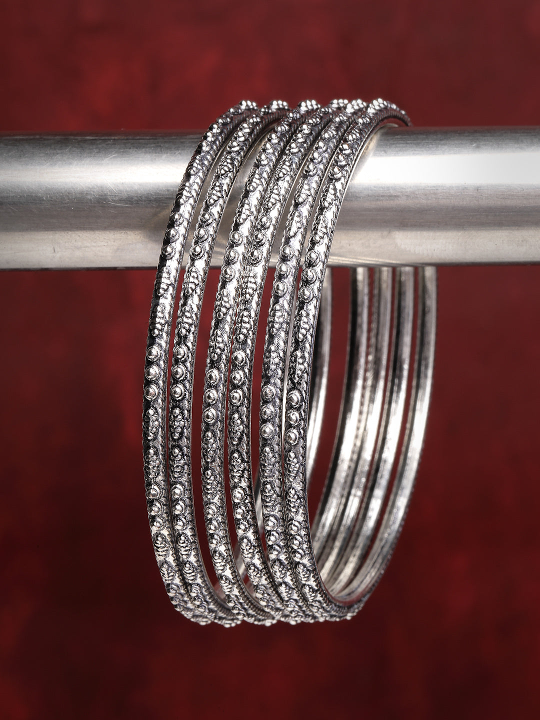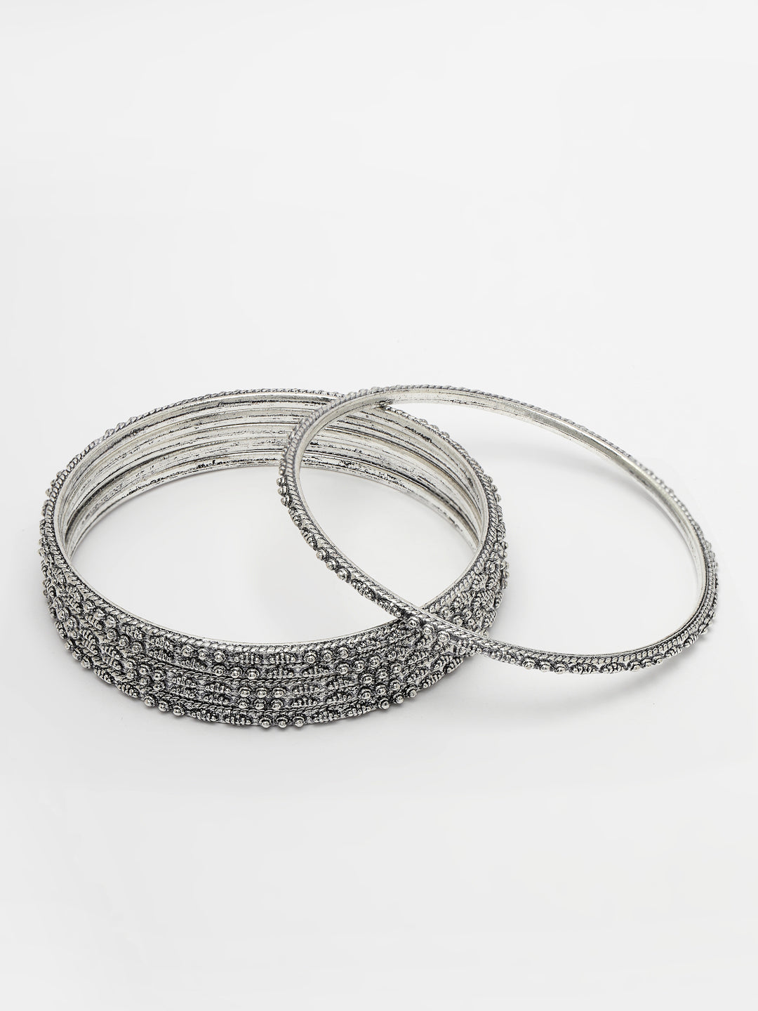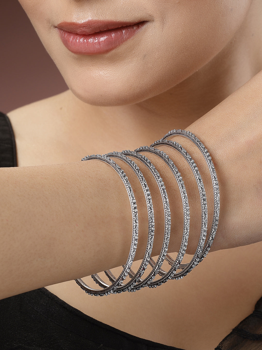 NVR Women Set of 6 Silver-Toned German Silver Oxidised Bangles