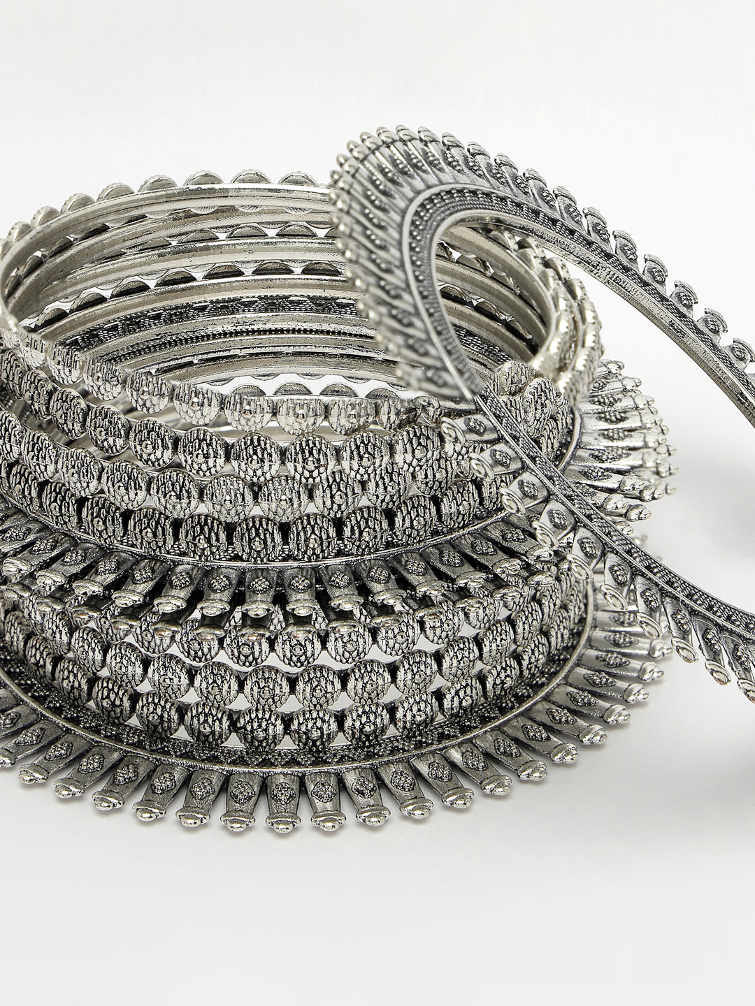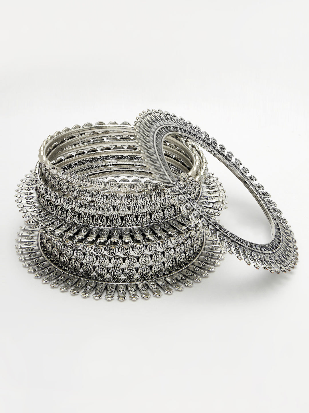 NVR Women Set of 6 Silver-Toned German Silver Oxidised Bangles