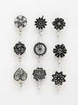 "Style Note: The NVR Women Set of 9 Silver-Plated German Silver Nose Pins offers a versatile and stylish way to adorn your nose. Crafted from German silver with a silver-plated finish, each nose pin in the set is designed to add a touch of elegance and charm. Featuring various designs and styles, these nose pins can complement a range of outfits, from casual to formal attire. Their small size and lightweight design ensure comfort while wearing, making them suitable for daily use or special occasions. Embrace the beauty of traditional craftsmanship with this set of nose pins, enhancing your facial features with subtle sophistication.