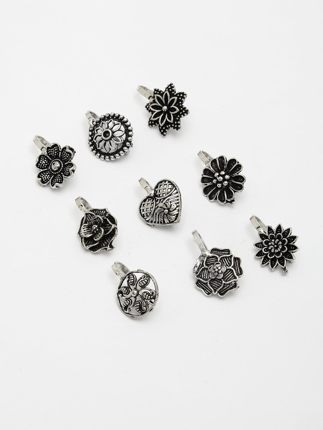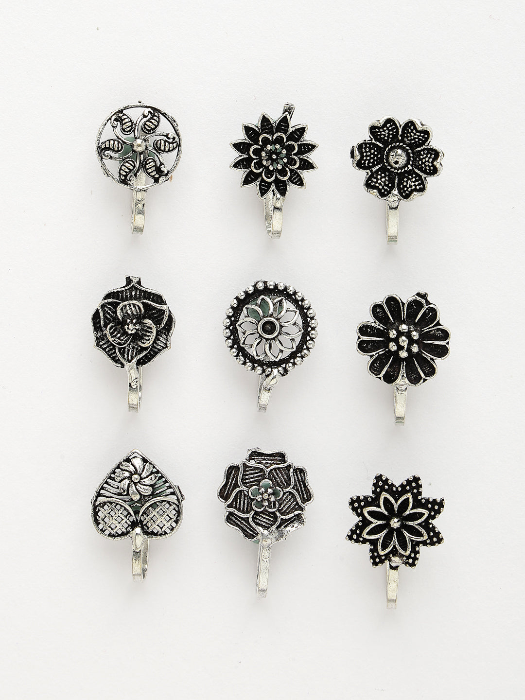 NVR Women Set of 9 Silver-Plated German Silver Nose Pins