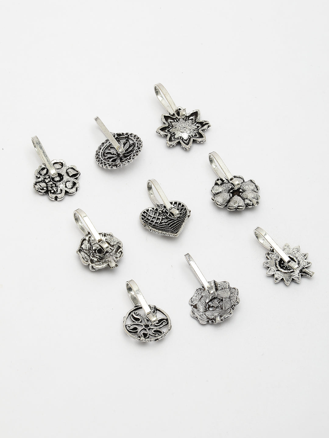 Set of 9 Silver-Plated German Silver Nose Pins