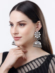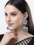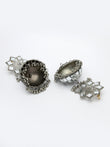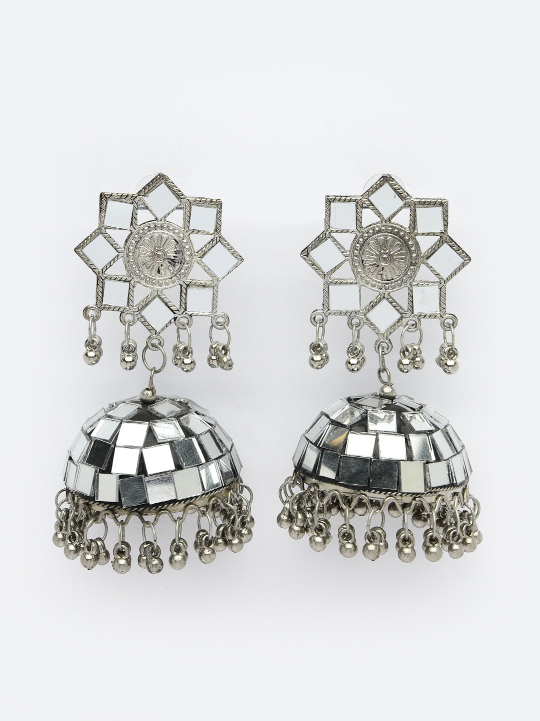 Silver Mirror Oxidised Brass-Plated Dome Shaped Jhumka Earrings , secured with a Post and Back