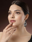 Style Note: Elevate your ensemble with the enchanting allure of the NVR Women Silver-Plated German Silver Oxidised Chandbali Earrings. Crafted with intricate detail, these earrings feature a captivating chandbali design crafted from silver-plated German silver with an oxidised finish, exuding a sense of timeless elegance and sophistication. The oxidised detailing adds depth and character to the design, making these earrings perfect for both formal occasions and everyday wear. Whether you're attending a special event or adding a touch of glamour to your everyday look, these earrings are sure to dazzle and delight with their exquisite design and versatile appeal. Embrace the beauty of traditional craftsmanship and let these chandbali earrings become a cherished addition to your jewelry collection, enhancing every ensemble with their graceful charm.