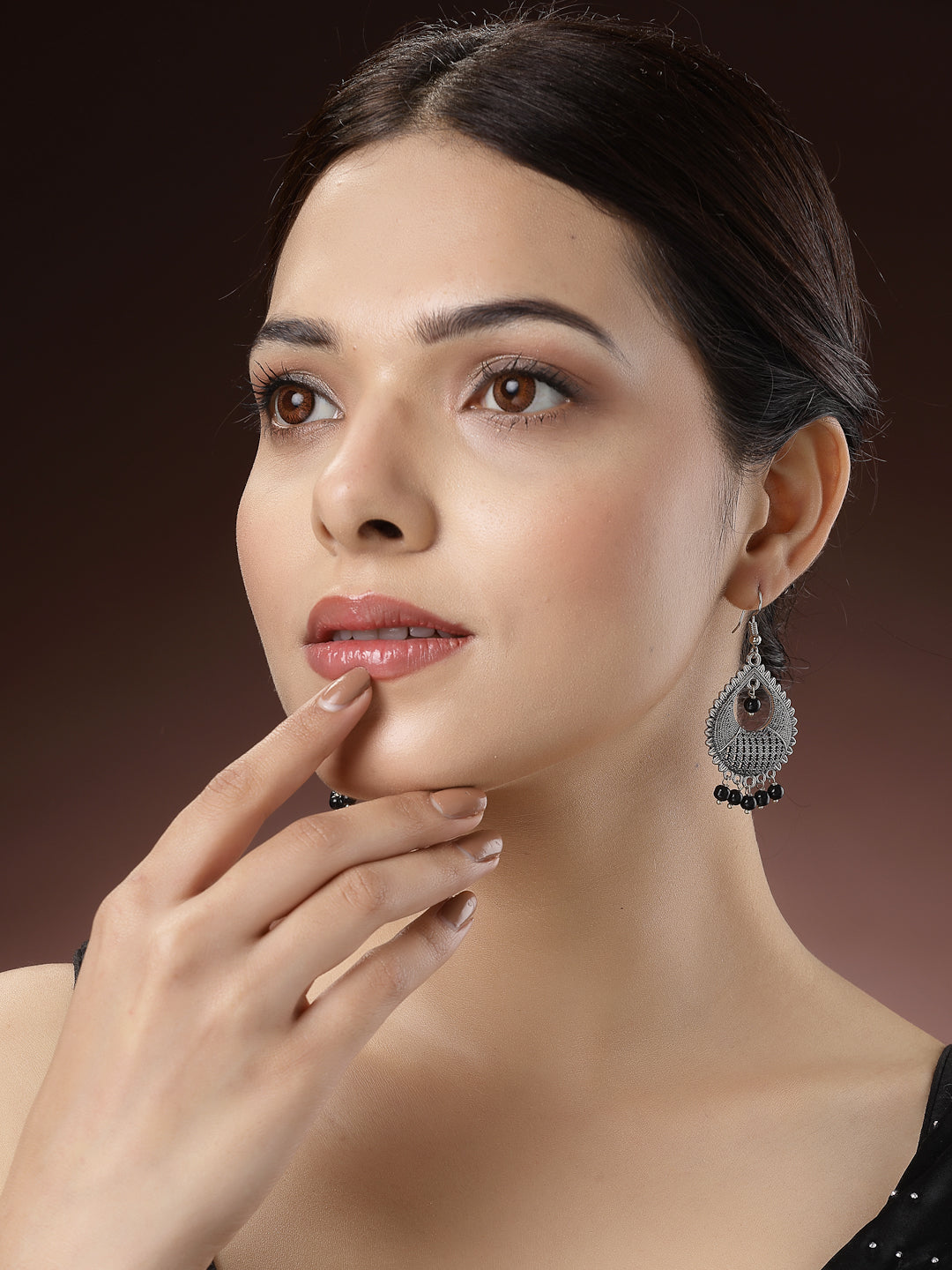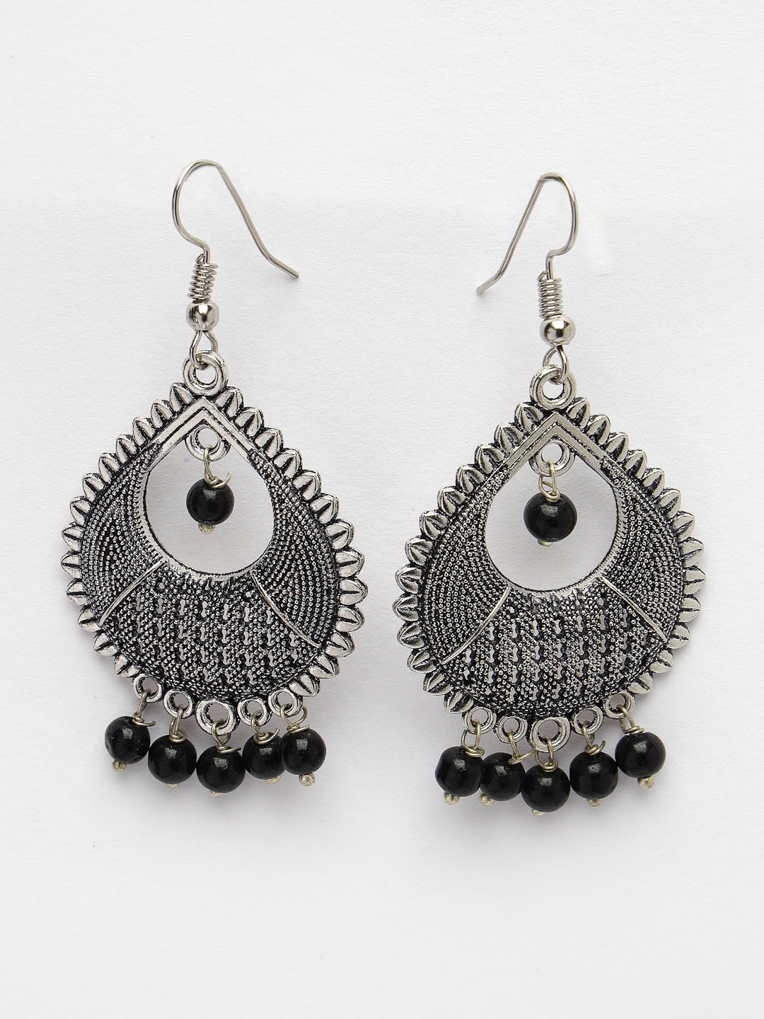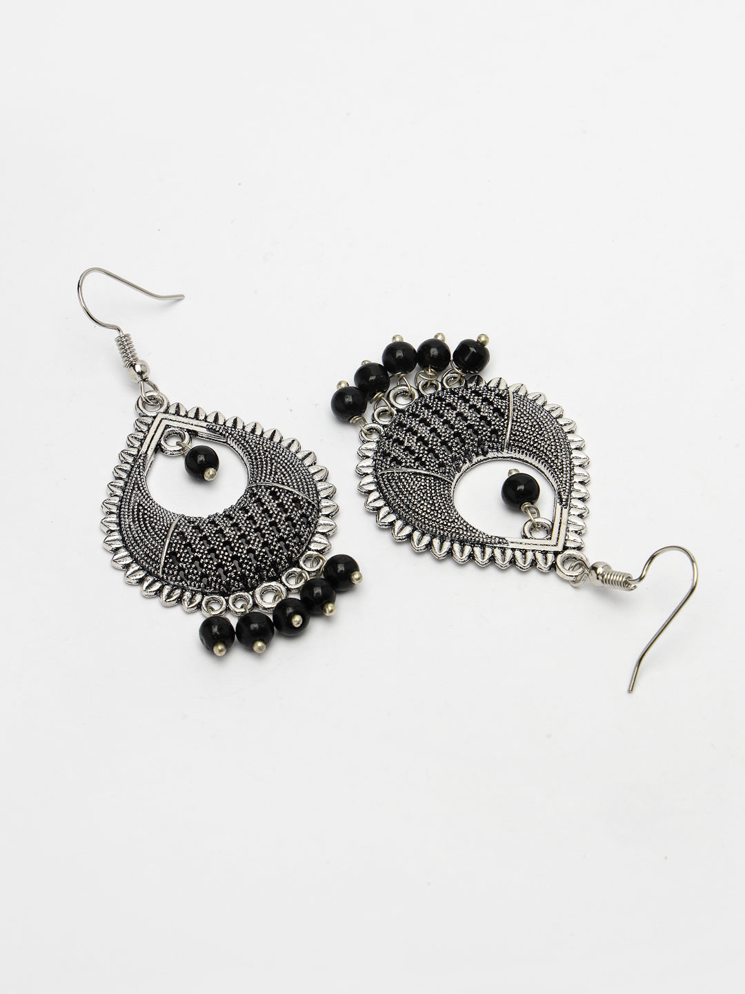 NVR Women Silver-Plated Artificial Beads German Silver Oxidised Chandbali Earrings