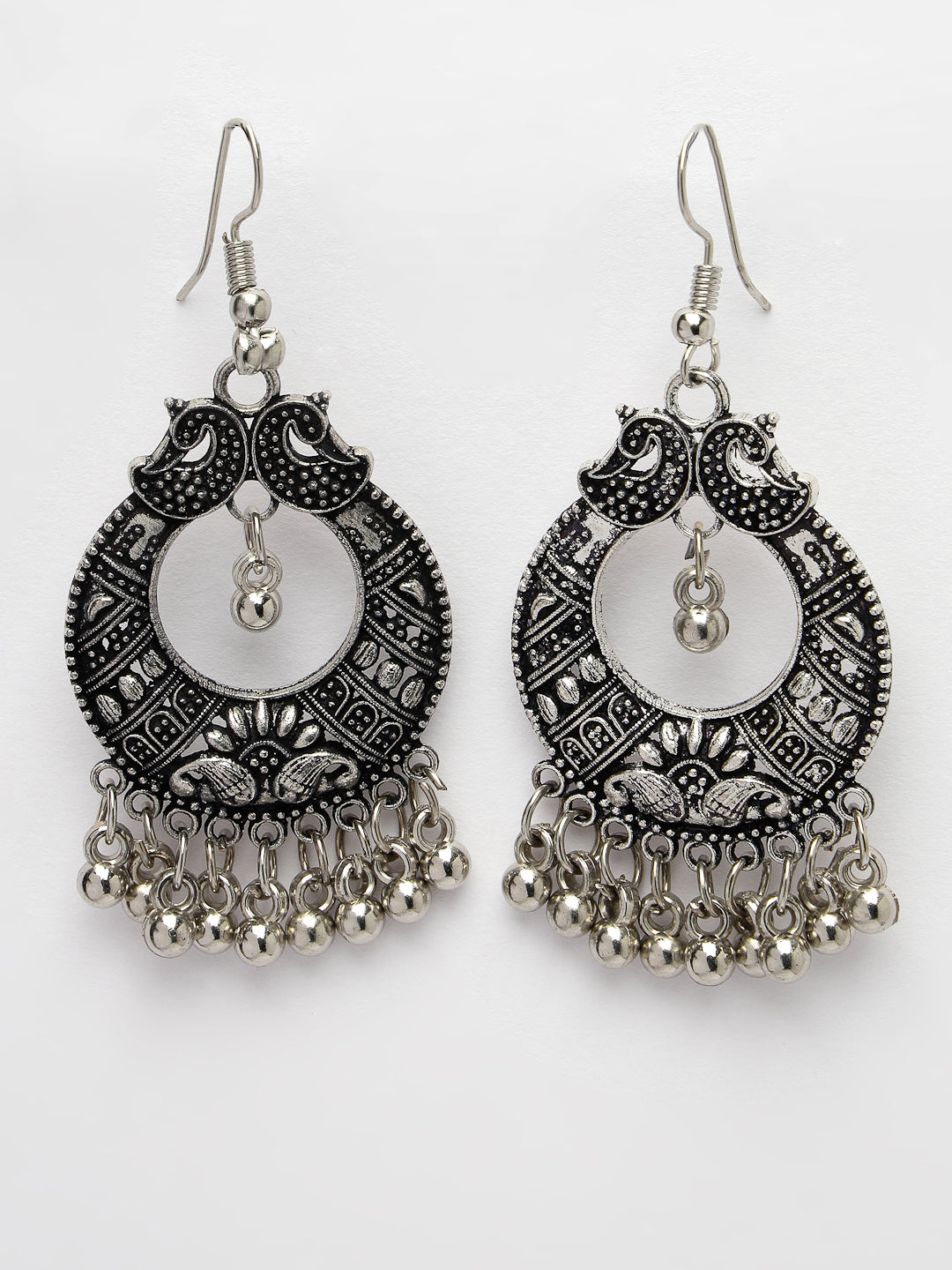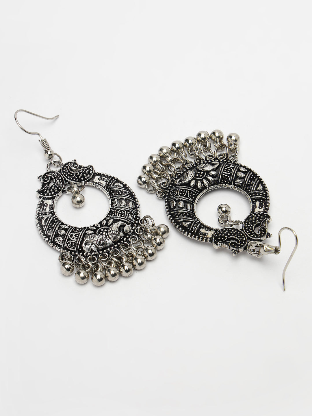 Silver-Plated German Silver Oxidised Chandbali Earrings