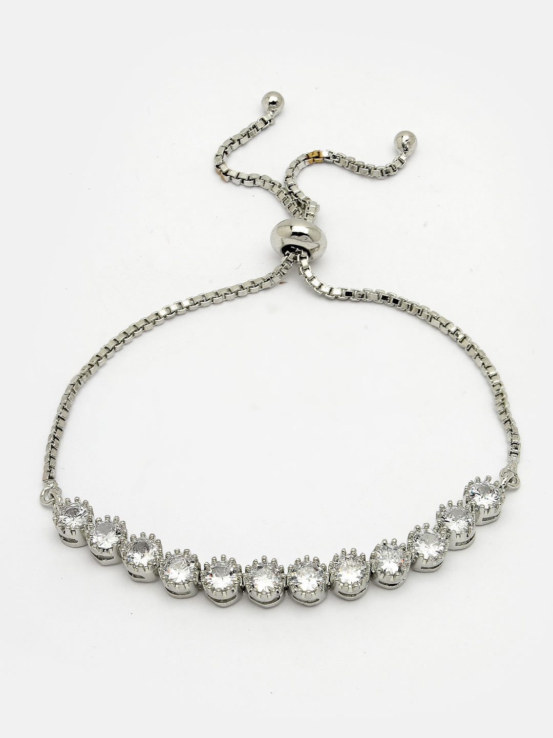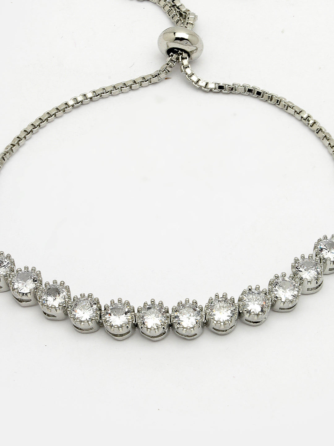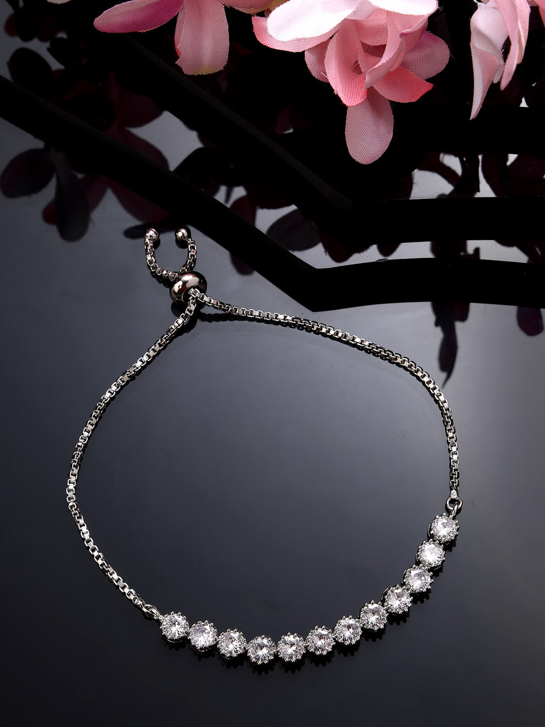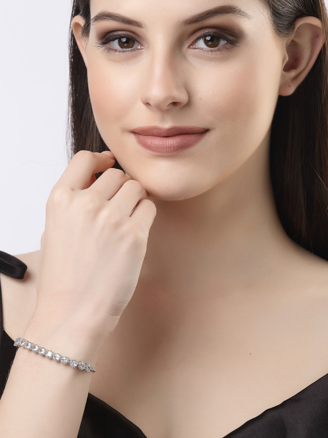 NVR Women Silver-plated Handcrafted American Diamond Link Bracelet