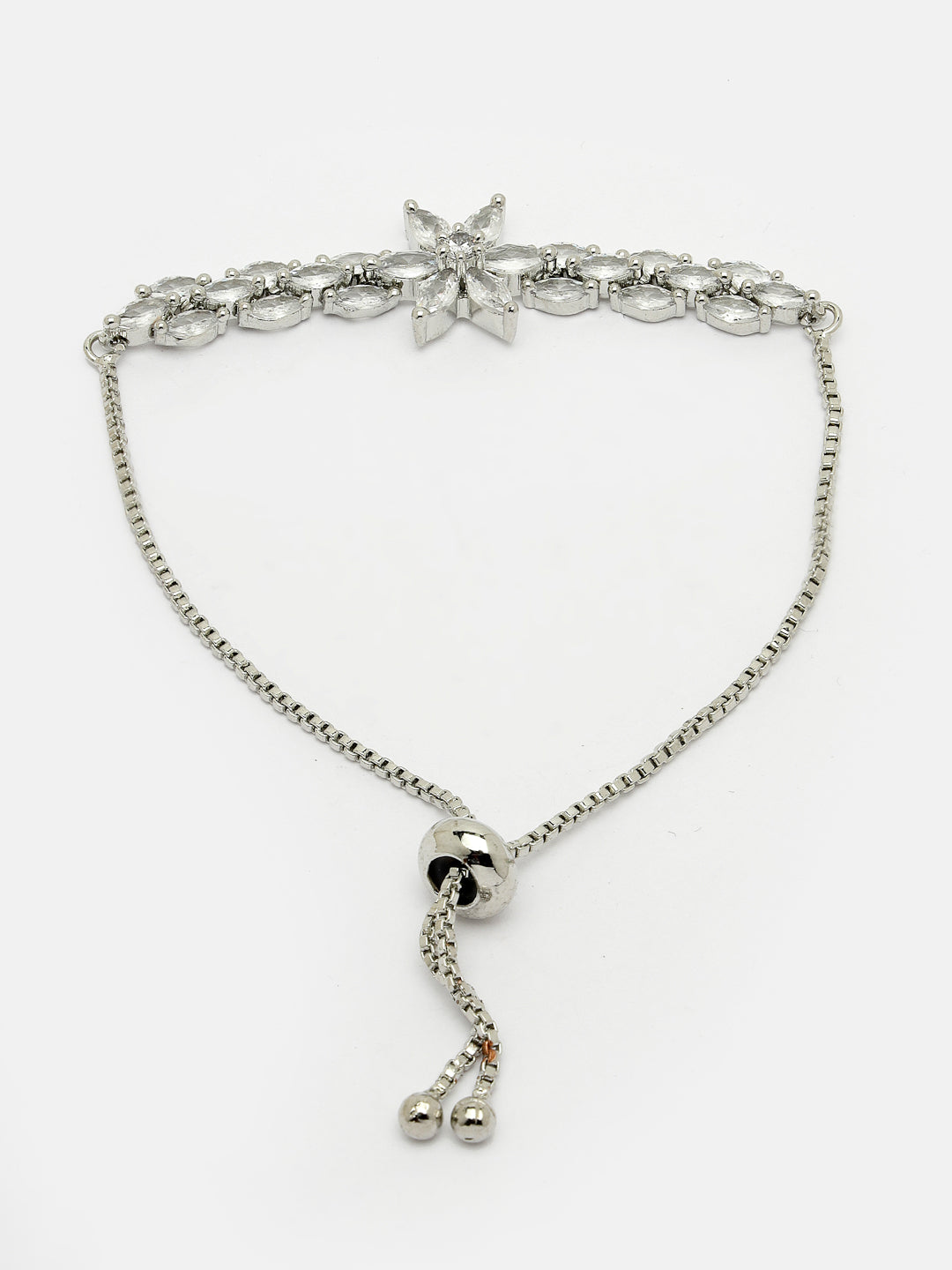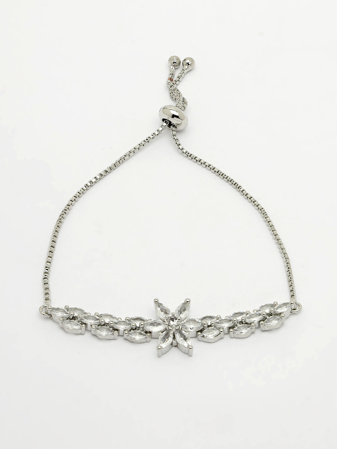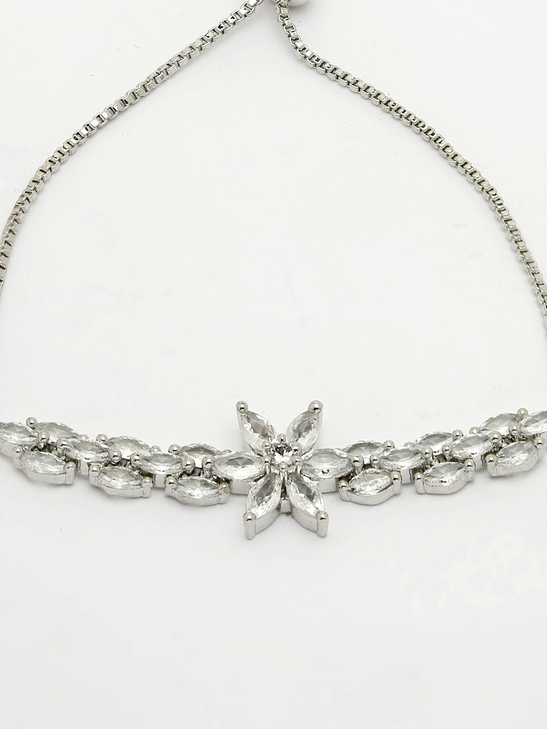 NVR Women Silver-plated Handcrafted American Diamond Link Bracelet