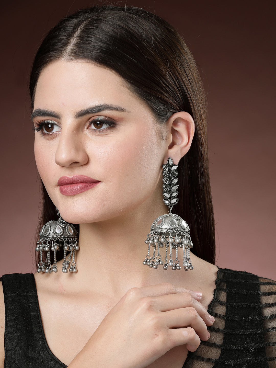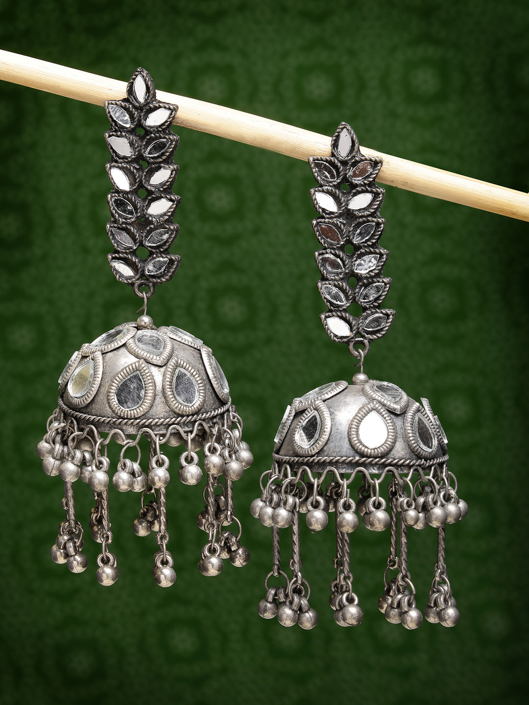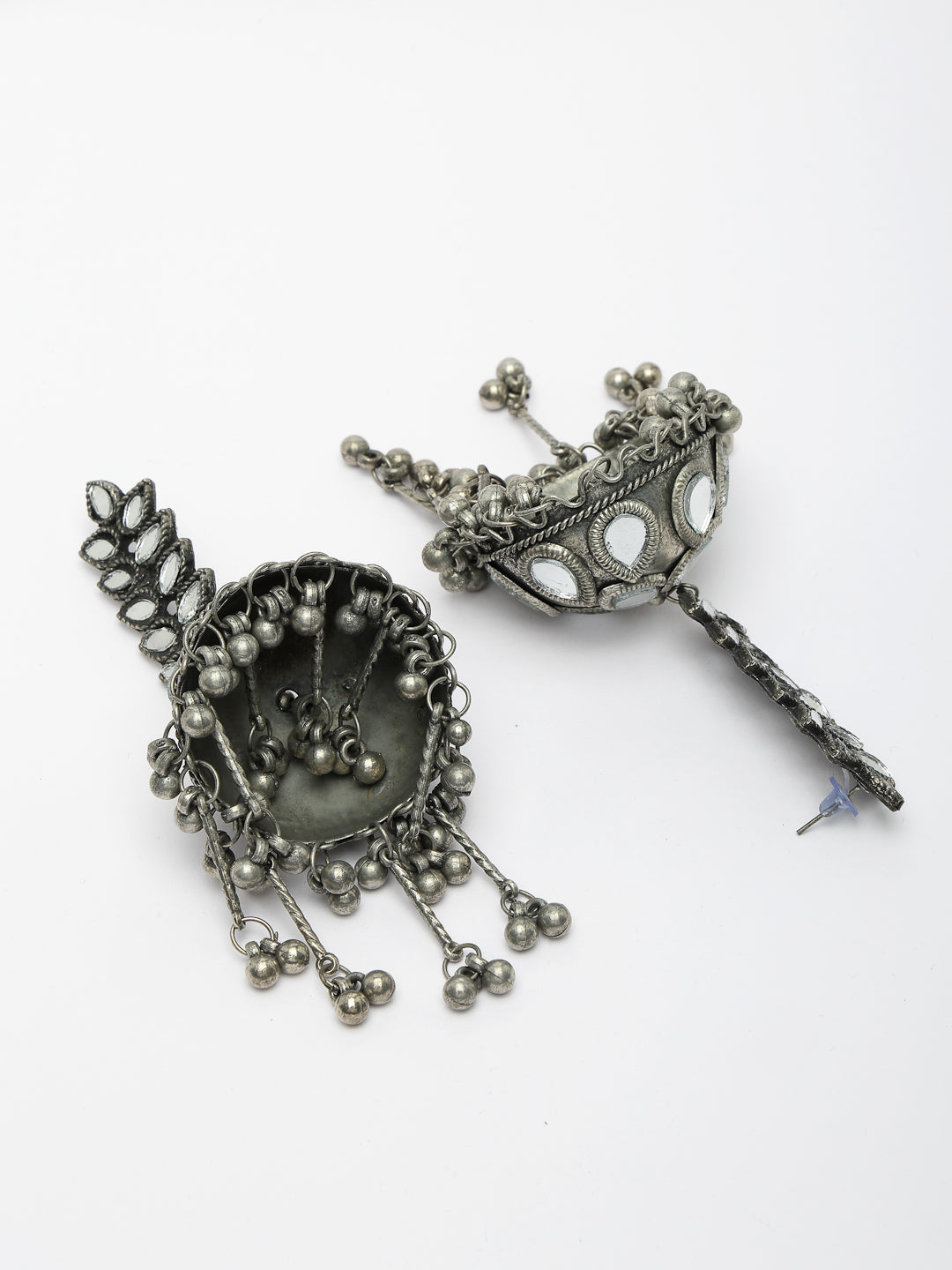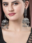 Style Note: Enhance your look with the NVR Women Silver Plated Mirror Work Oxidised Contemporary Jhumka Earrings. Their fusion of mirror work and oxidized finish adds a modern twist to traditional jhumka style, making them versatile for both casual outings and semi-formal occasions. Perfect for adding a touch of sophistication to your ensemble, these earrings are ideal for a day out with friends or a stylish evening gathering.