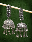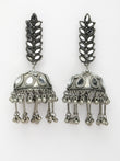 Silver Plated Mirror Work Oxidised Contemporary Jhumka Earrings