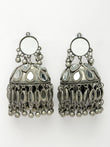 Silver Plated Mirror Work Oxidised Contemporary Jhumka Earrings