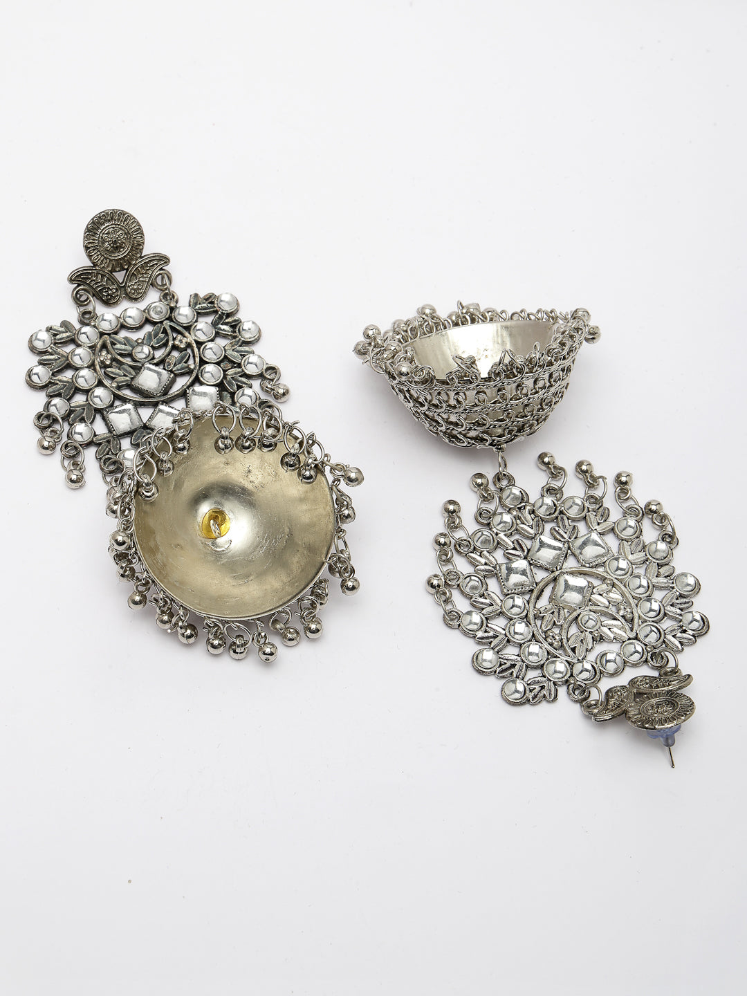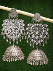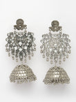 Silver-Plated Oxidised Artificial Stones Dome Shaped Jhumka Earrings