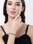 NVR Women Silver-Toned & Black Brass Rhodium-Plated Link Bracelet
