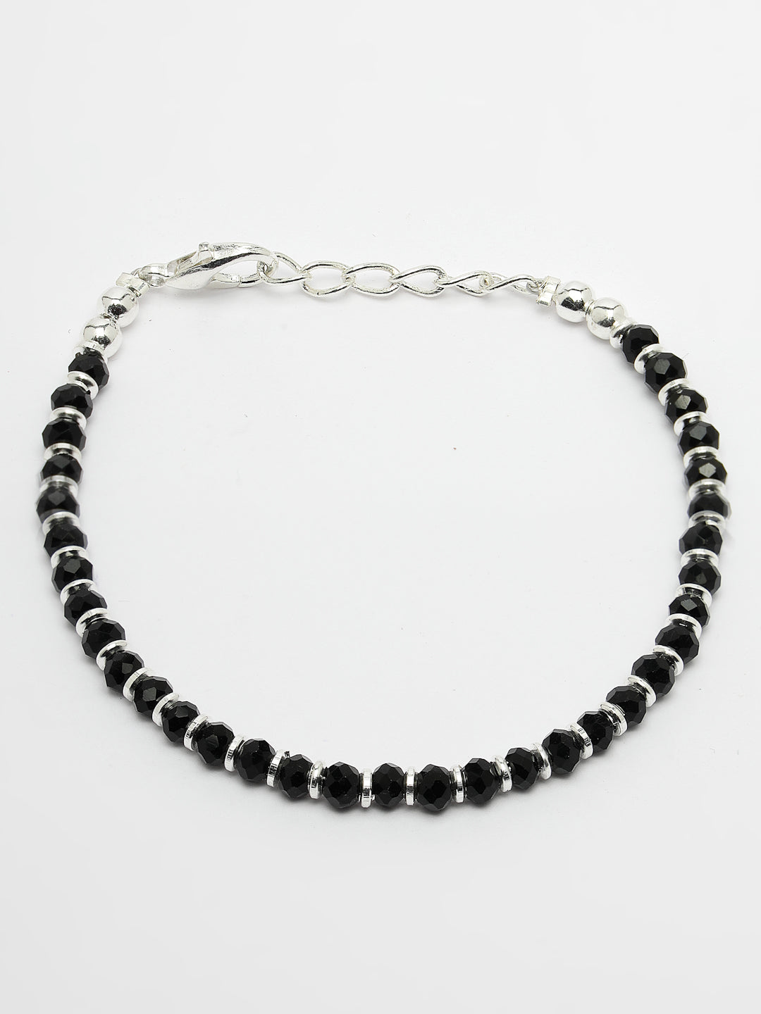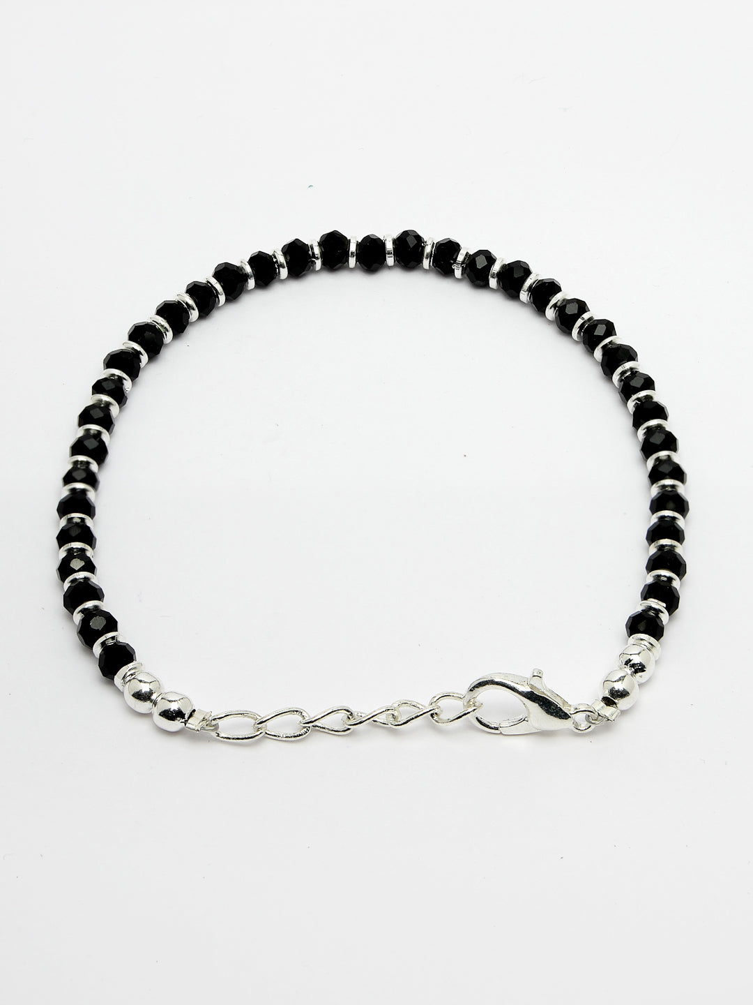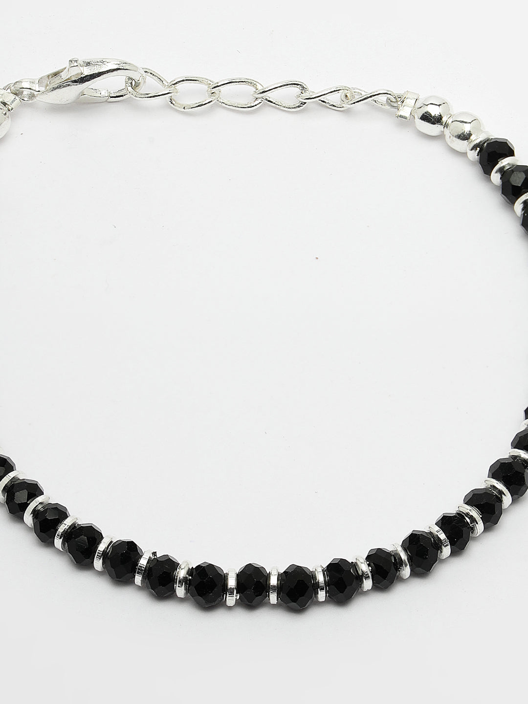 Silver-Toned & Black Brass Rhodium-Plated Link Bracelet , secured with Lobster Claw Closure.