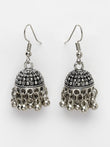 Silver-Toned German Silver Oxidised Dome Shaped Jhumka Earrings