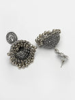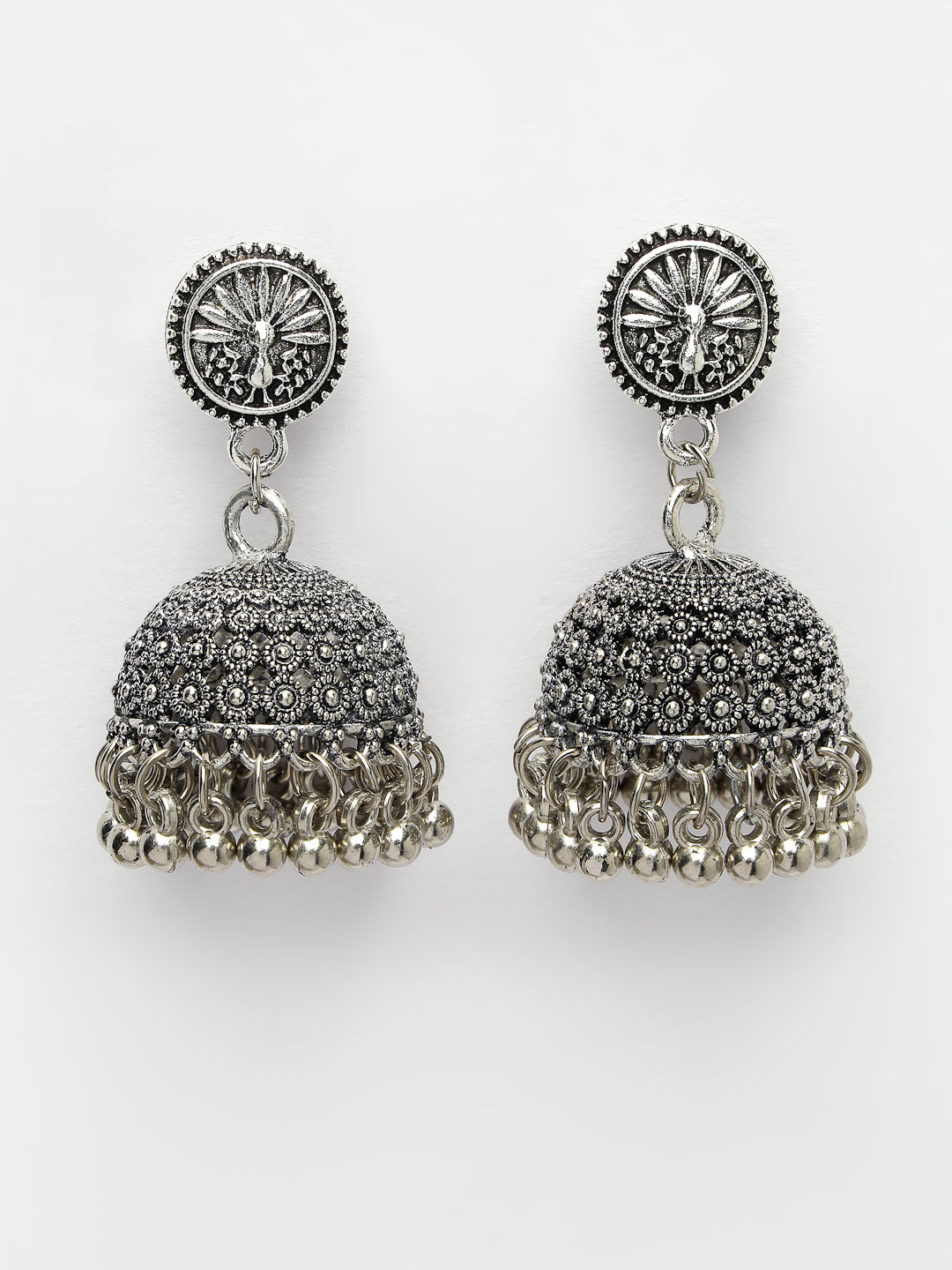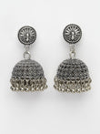 Silver-Toned German Silver Oxidised Dome Shaped Jhumka Earrings