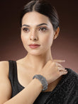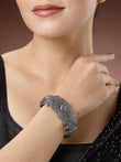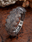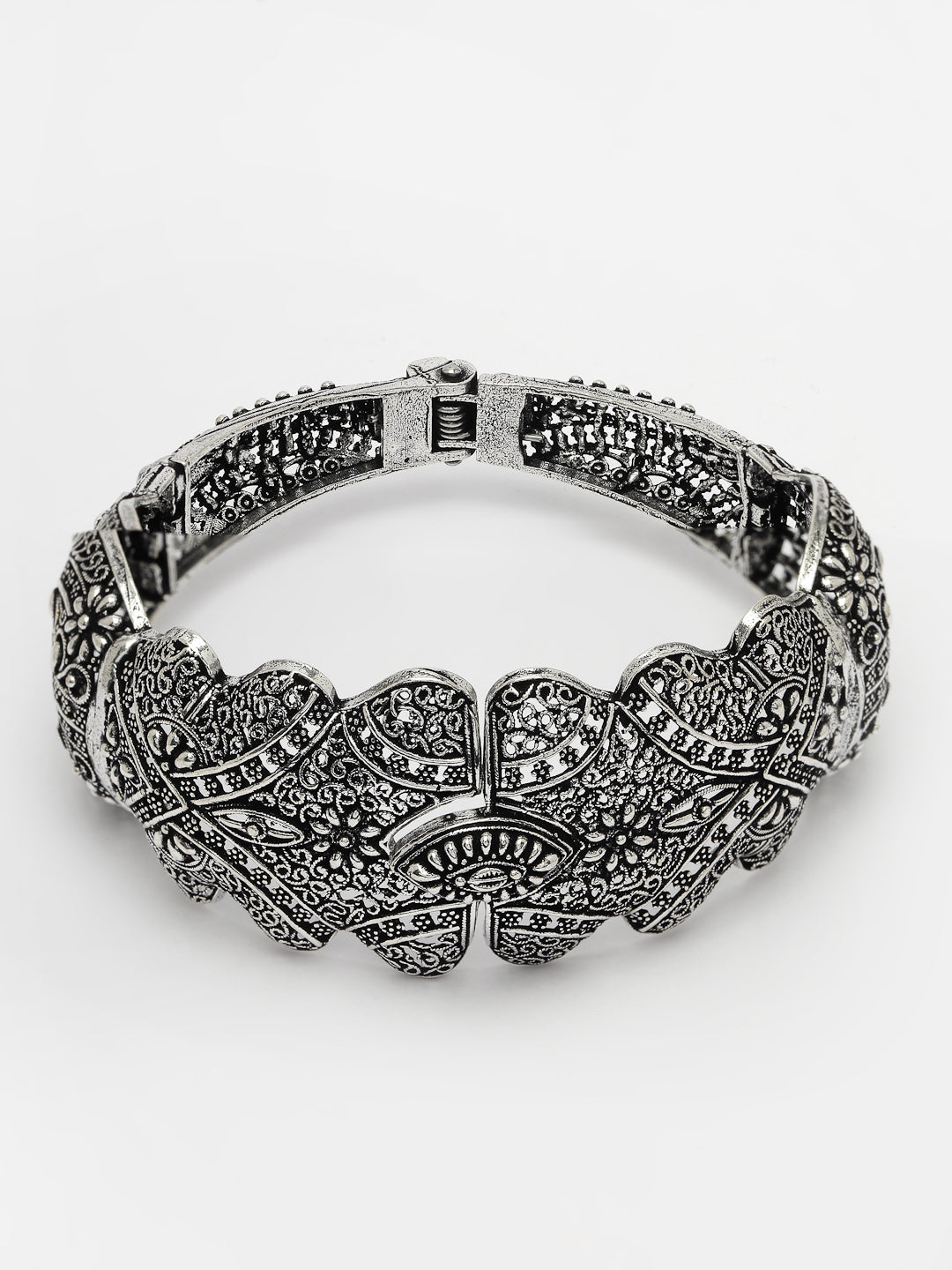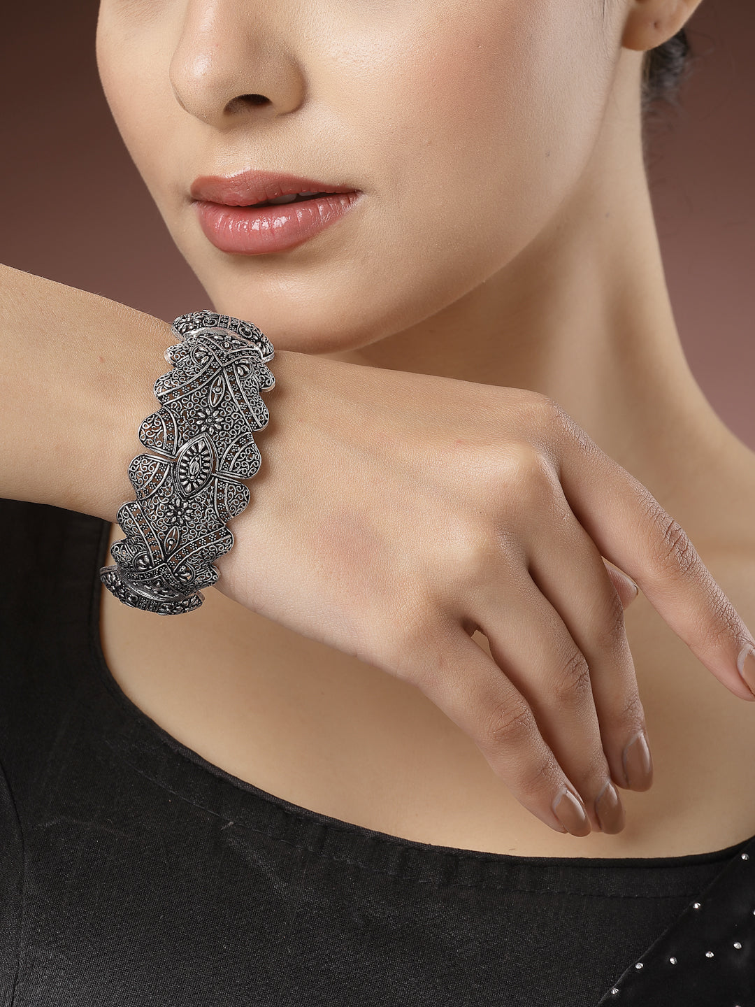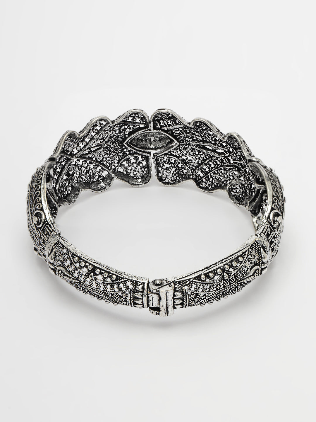 NVR Women Silver-Toned German Silver Oxidised Kada Bangle