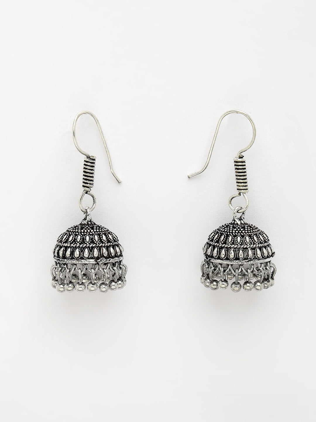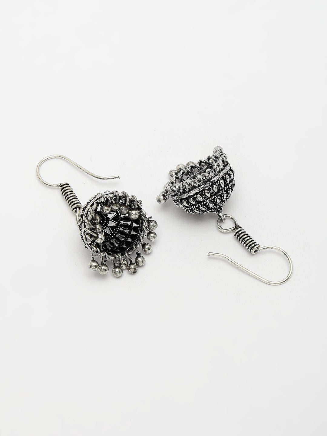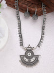 Silver-Toned German Silver Oxidised Necklace with Jhumka Earrings