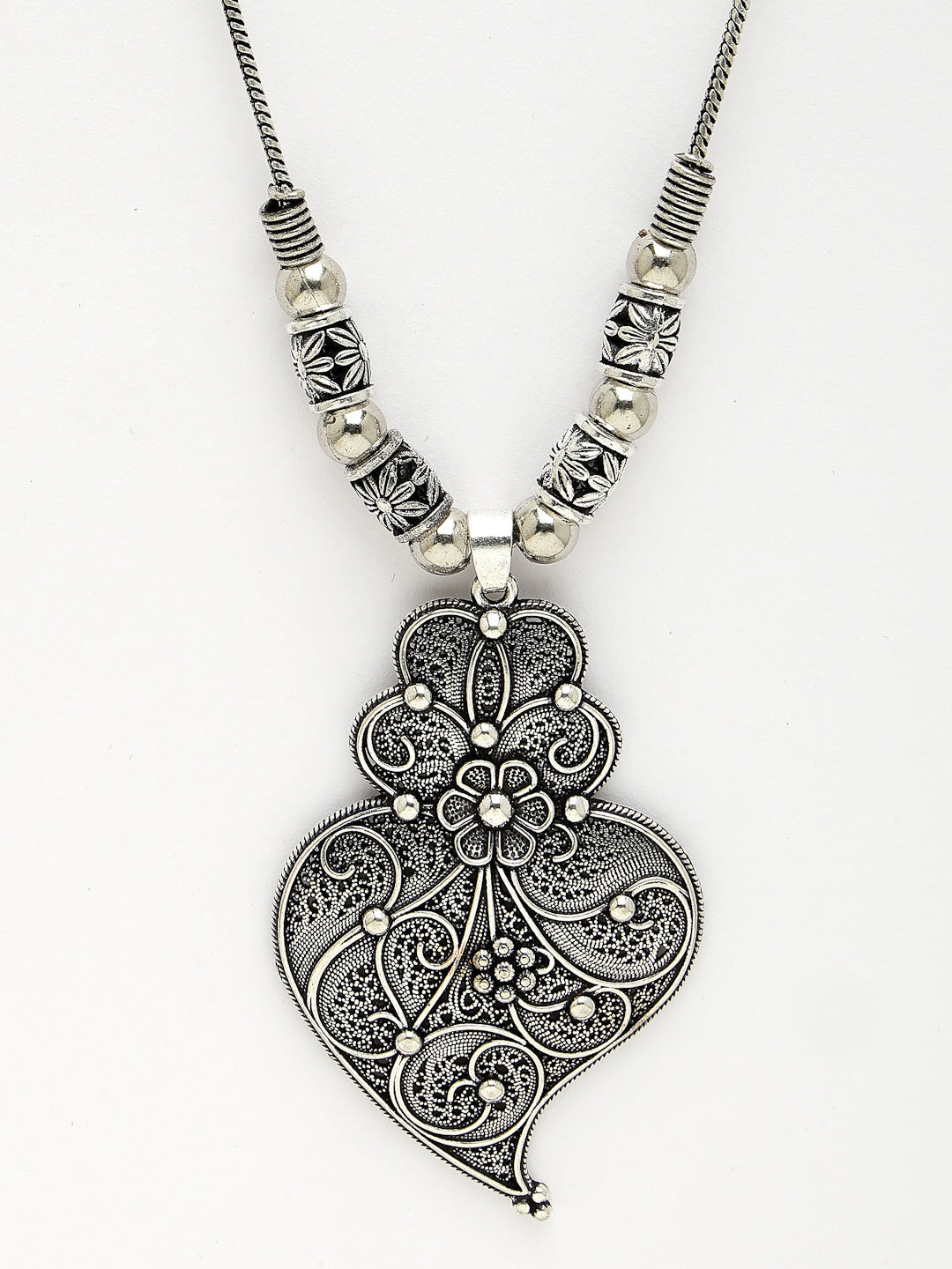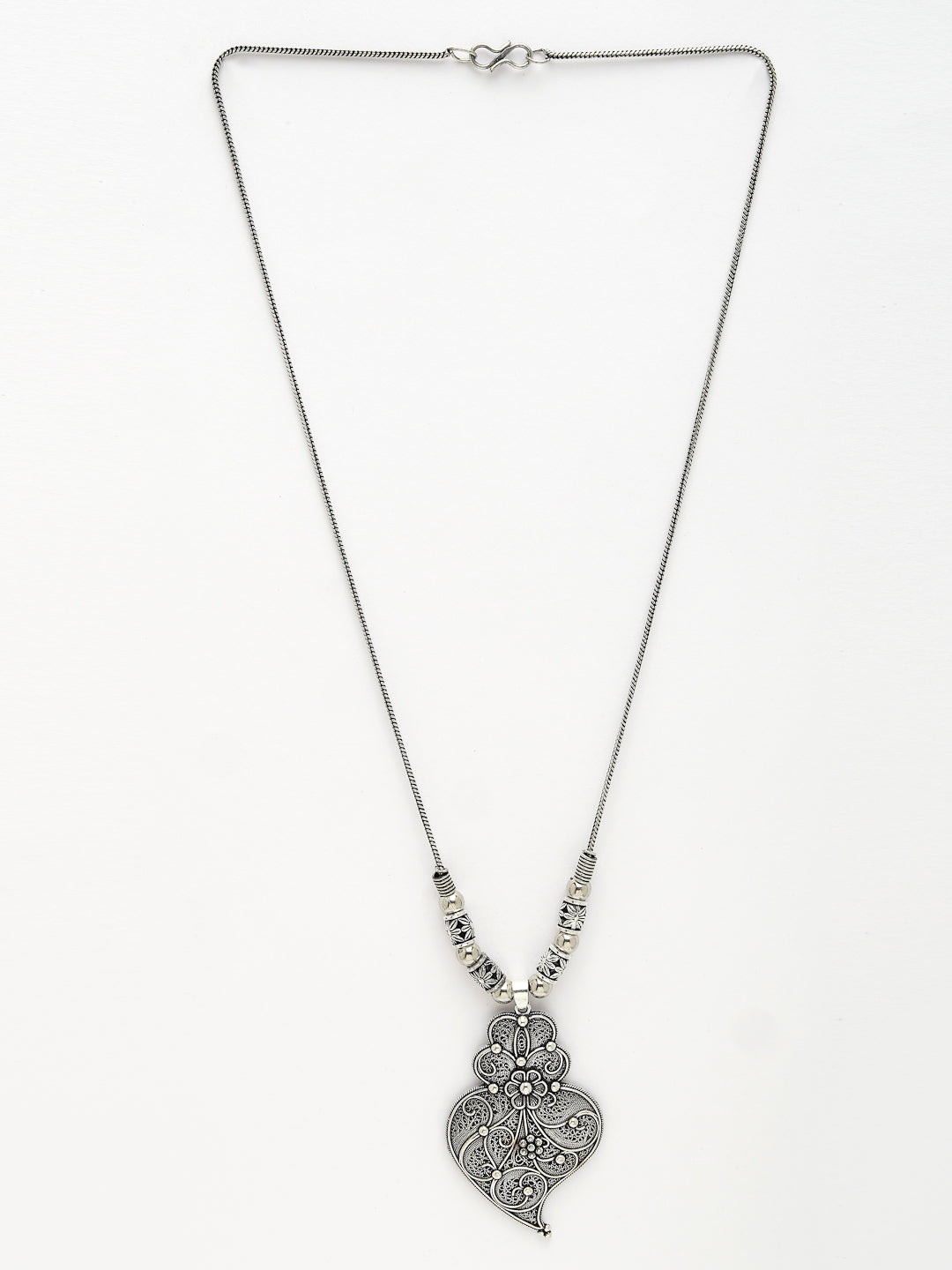 Silver-Toned German Silver Oxidised Pendant with Chain
