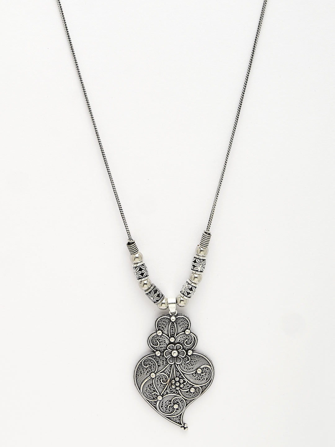 NVR Women Silver-Toned German Silver Oxidised Pendant with Chain
