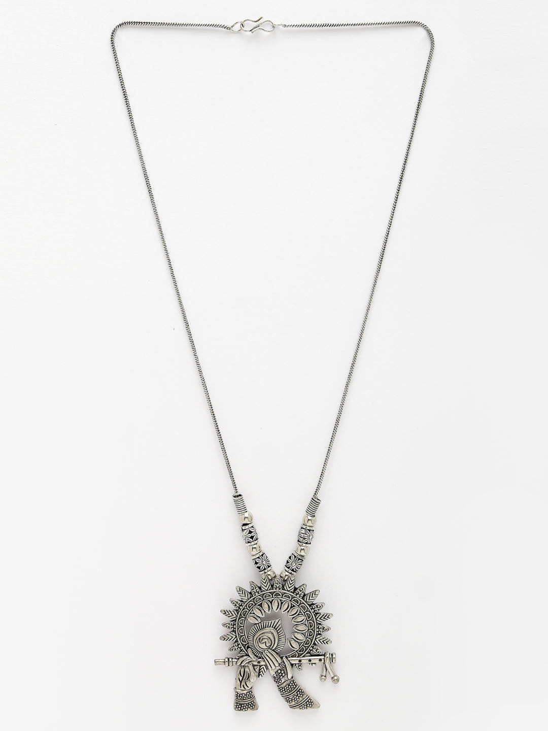 Silver-Toned German Silver Oxidised Pendant with Chain