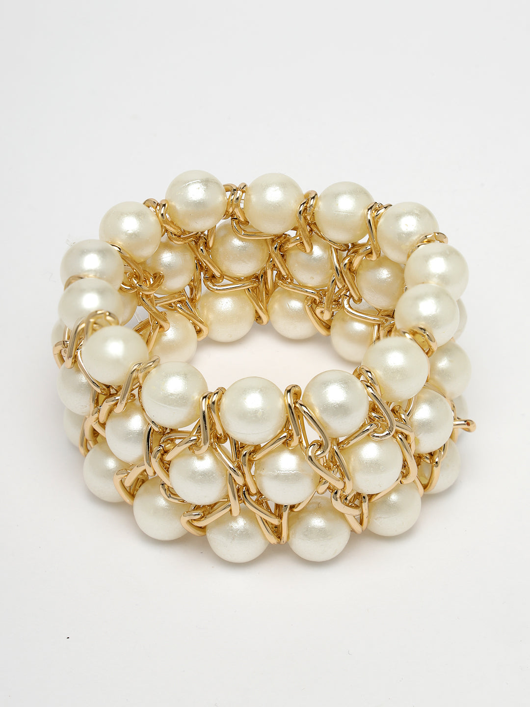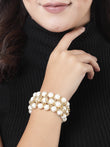 NVR Women White Beaded Elasticated Bracelet