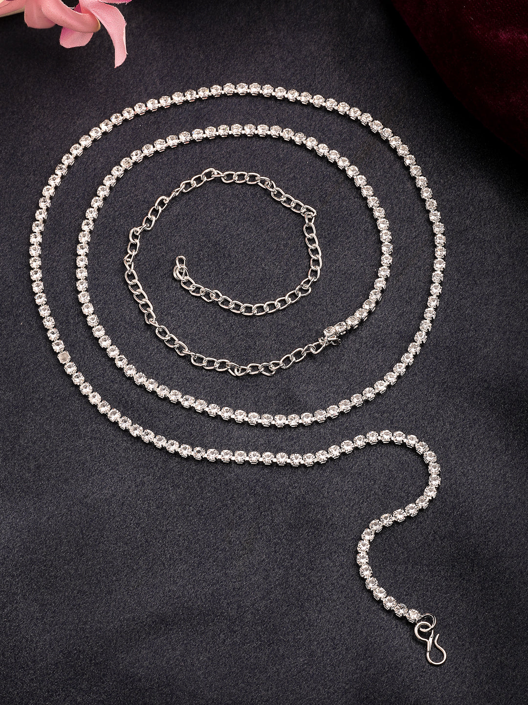 NVR Women's Silver-Plated AD-Studded Kamarbandh Waist Chain
