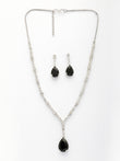NVR Women's Silver-Plated Black American Diamond-Studded Handcrafted Jewellery Set