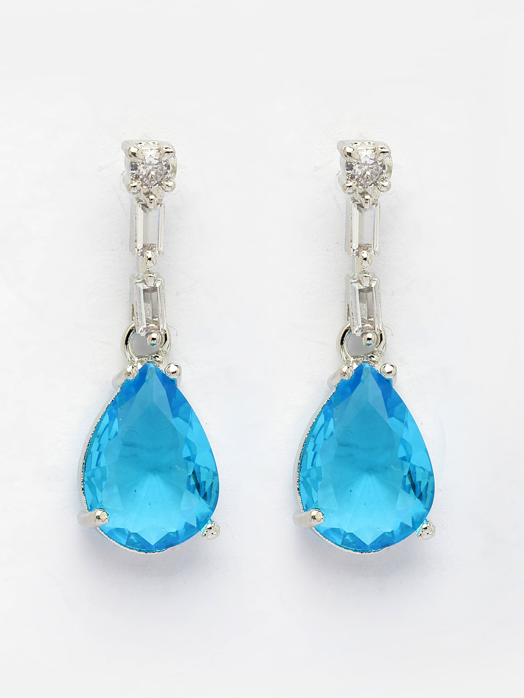 NVR Women's Silver-Plated Blue American Diamond-Studded Handcrafted Jewellery Set