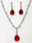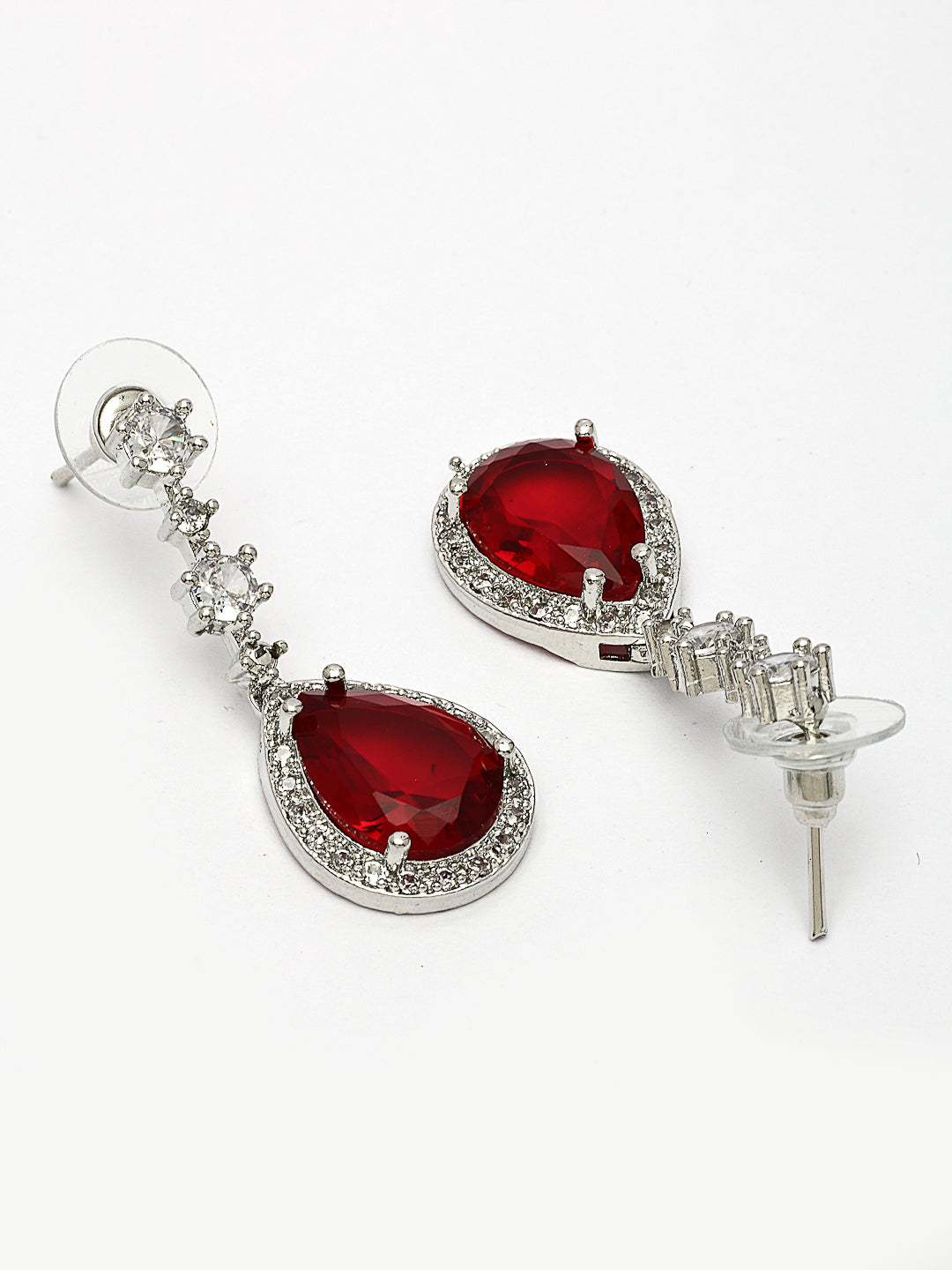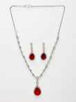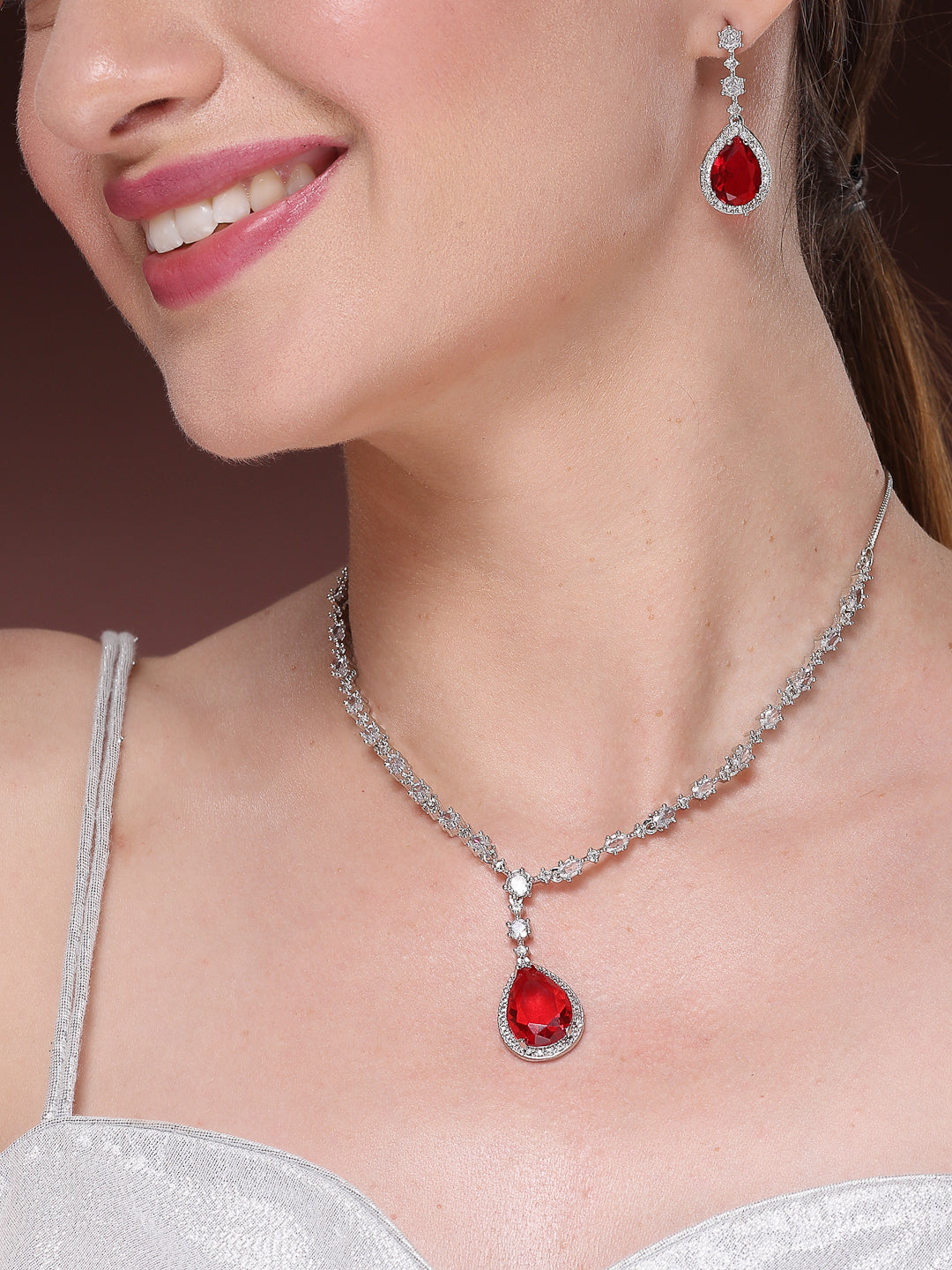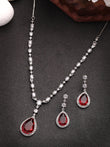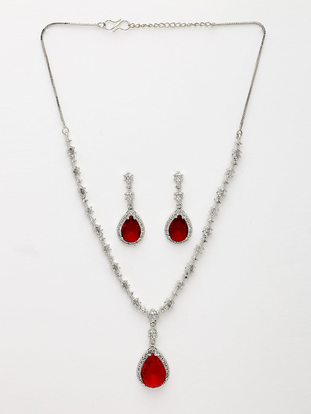 NVR Women's Silver-Plated Red American Diamond-Studded Handcrafted Jewellery Set