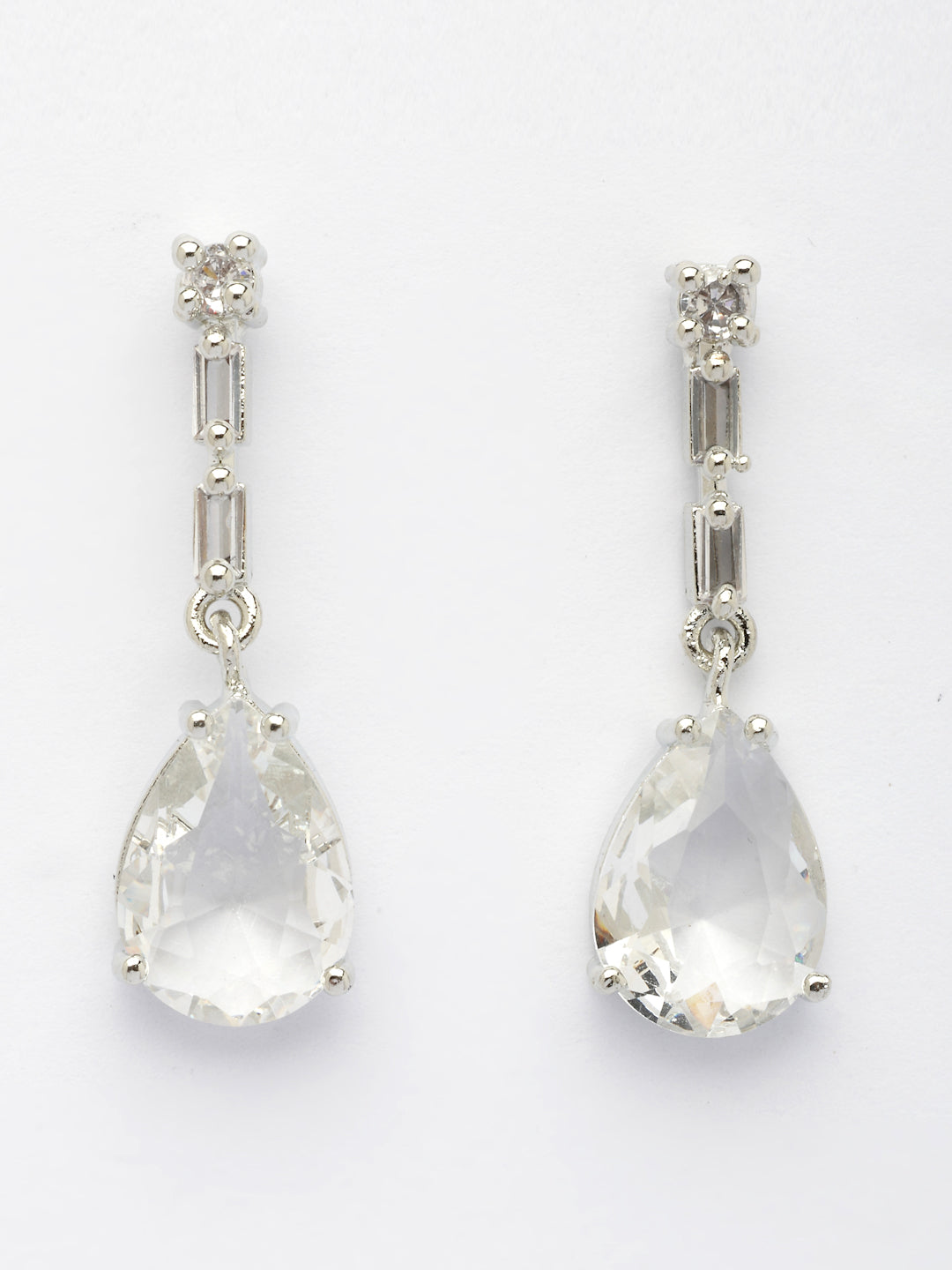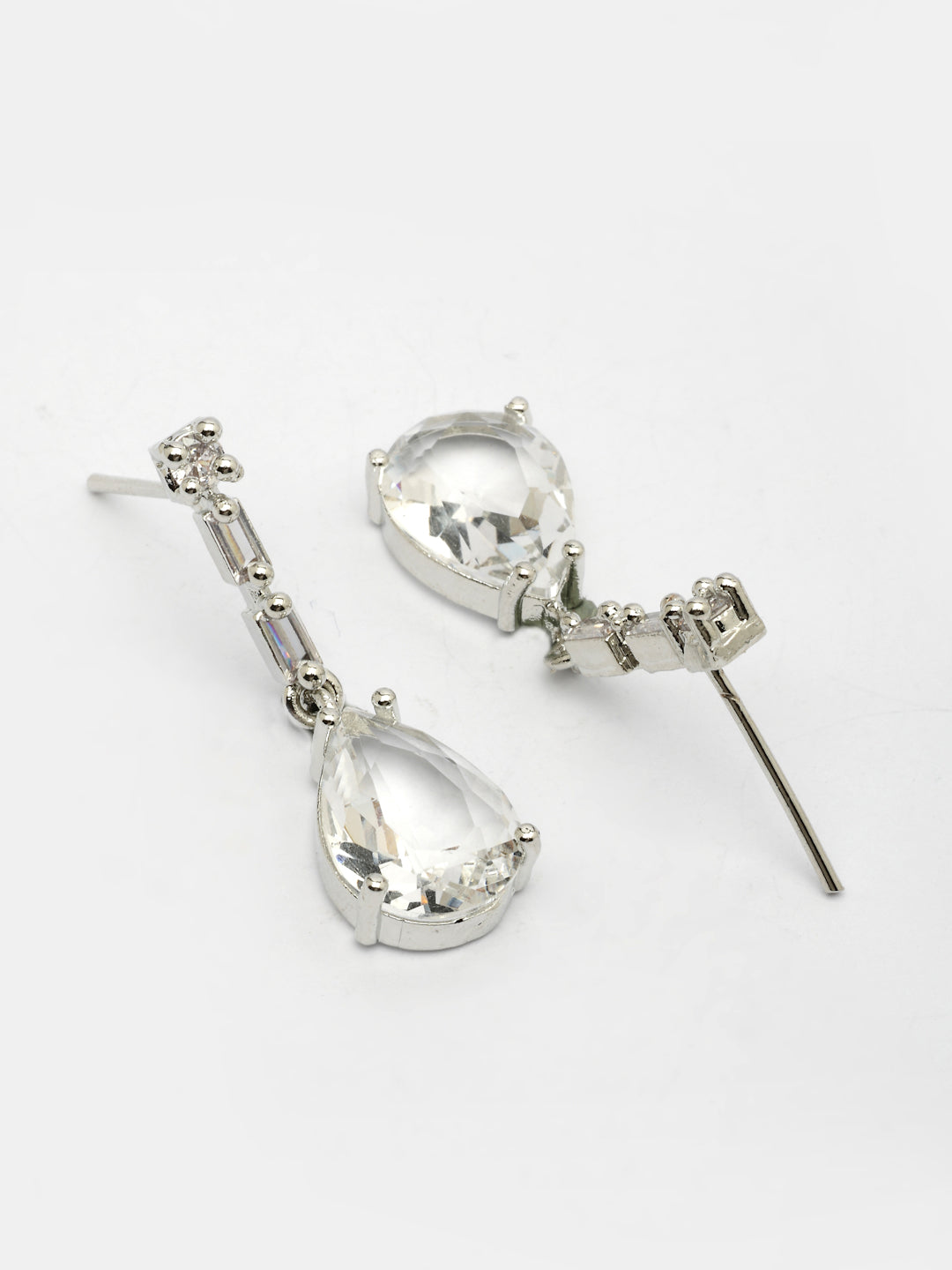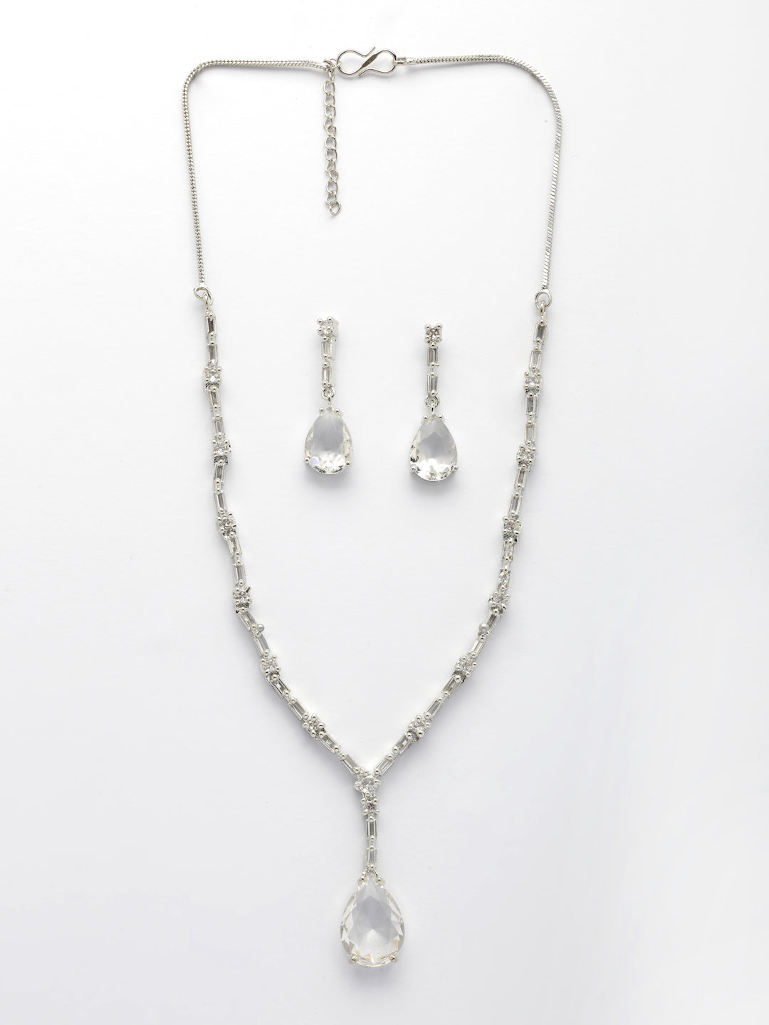 NVR Women's Silver-Plated White American Diamond-Studded Handcrafted Jewellery Set